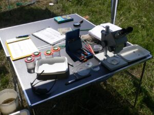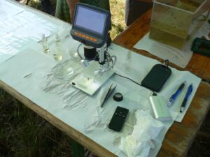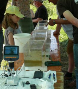 Die gefangenen Tiere wurden in Aquarien, Becherlupen und mit dem Stereomikroskop beobachtet und mit Hilfe eines Biologen näher erklärt.